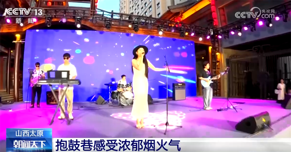 在太原小店区的抱鼓巷, 夜幕降临后灯火通明、人头攒动,现场除了精彩的音乐表演,抱鼓巷还为人们准备了互动打卡游戏。此外,烧烤、火锅、海鲜、特色冷饮等各类美食一应俱全。记者了解到,在周末假日,抱鼓巷的日客流量会超过1万人次,人们在这里感受浓郁烟火气。