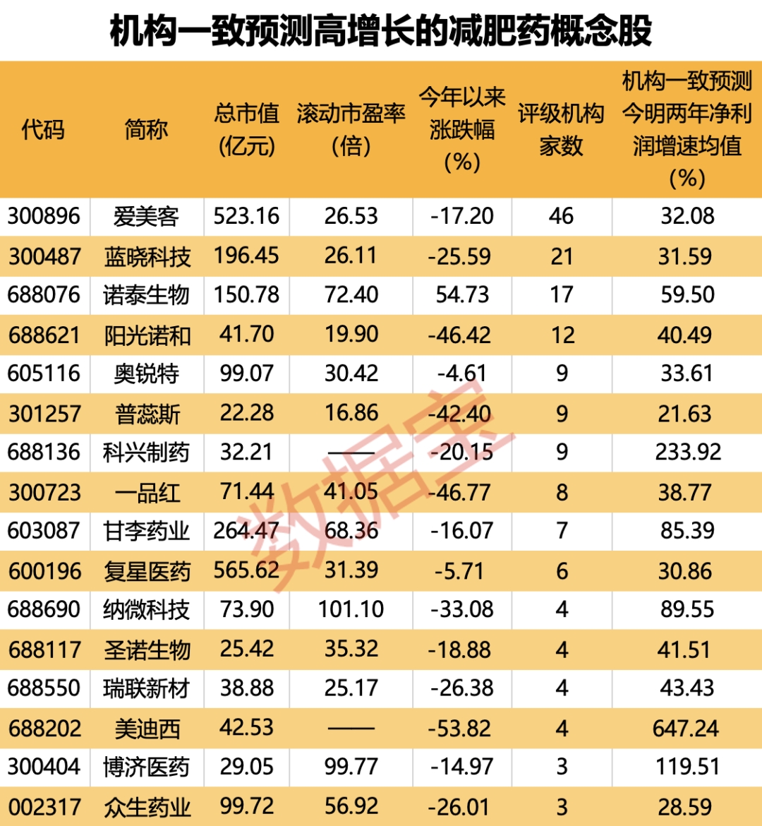 国际“减肥神药”曝大利好,高增长概念股名单出炉