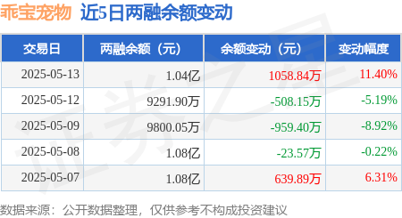 配资世家股票平台 乖宝宠物:5月13日融资买入3102.65万元,融资融券余额1.04亿元