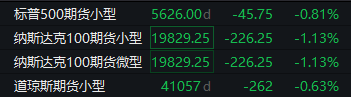 道指期货跌0.63%,标普500指数期货跌0.81%,纳指期货跌1.13%。